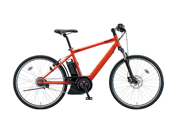 本格的なクロスバイクに電動アシスト自転車としての機能をプラスしたモデル。大型バッテリーを搭載し、最長約90kmの走行が可能ながらアルミフレームを採用したボディーは22.5kgの軽量タイプ。変速ギアは8段変速を搭載し、電動アシスト無しでも平地から坂道まで快適に走れる設計です。速度やバッテリー残量などが見やすい大型液晶メーターや路面の段差も苦にならないサスペンションフォーク、雨の日も高い制動力を発揮するディスクブレーキなど快適な走行を支える装備が充実の1台です。