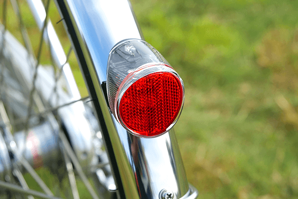 太陽光で充電、走りだすと自動点滅。夜間の走行、後ろからの追い越し、信号待ちでも安心です。