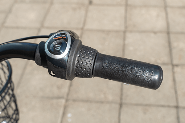 ハンドルを握ったまま簡単にギアを変更できるグリップシフトを採用。止まった状態でもギアチェンジできます。
