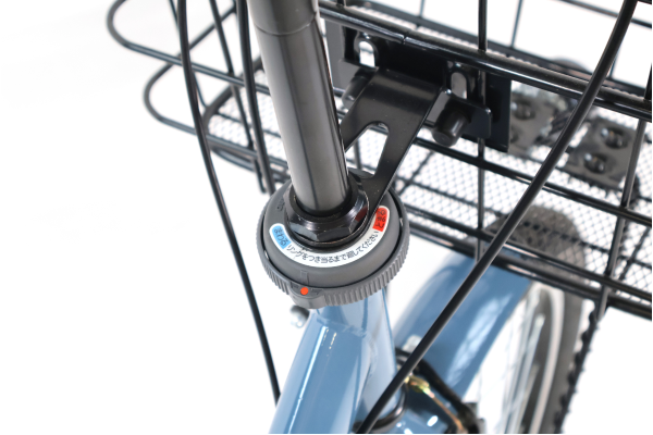 チャイルドシート取り付け時も操作しやすい後部取り付けタイプ。強度の高いシリンダ錠で防犯性も高い。(丸型バスケットモデル)