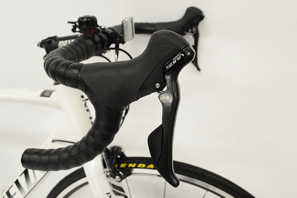 シマノ「SORA」のデュアルコントロールレバーで快適なシフティング操作を実現。
