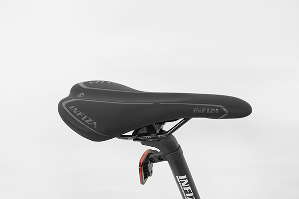 「INFIZA」ロゴの入った軽量なスポーツタイプサドル。