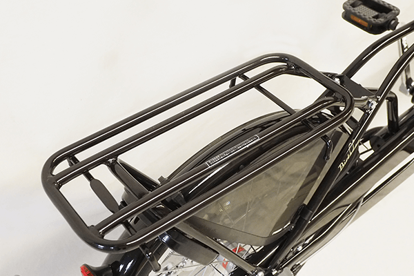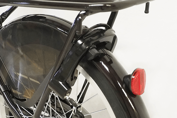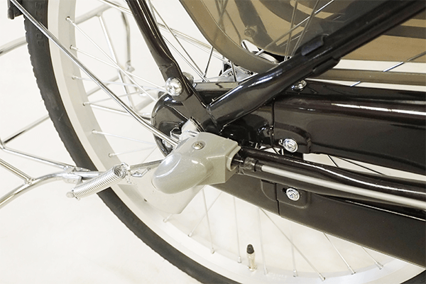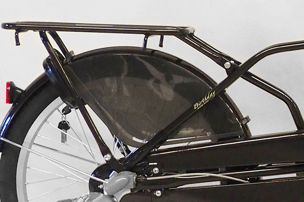 後ろにお子様を乗せたとき、足がタイヤに巻き込まれるのを防ぐドレスガードを装着。