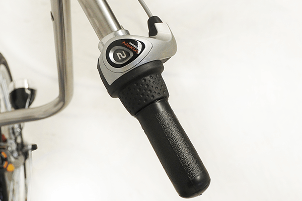 お子様を乗せながらでもハンドルを握ったままギアを変更できる、グリップシフトを採用。