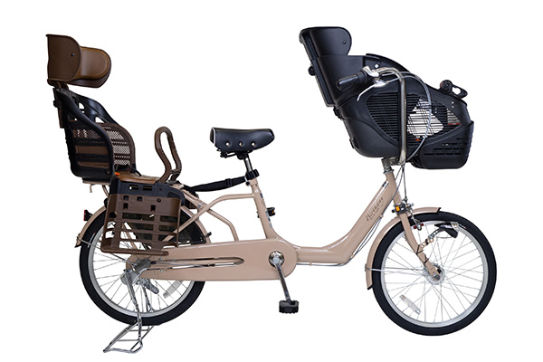 利用者の声を集め機能を改良。さらに使いやすくなった3人用チャイルドシート付き自転車が登場です。低床なフレームはスカートでも乗り降りしやすく、ハンドルロックはお子様の乗り降り時でもふらつきを抑えて安心です。さらにL字型のスタンドを採用しているので、てこの原理をつかってかるーく駐輪が可能。その上、耐パンクタイヤ&肉厚チューブでパンクしにくくより長持ち。鍵はダイキャストリング錠で防犯性をアップ。見た目もオシャレでトラブルにも強く、普段使いに大満足な一台となりました。