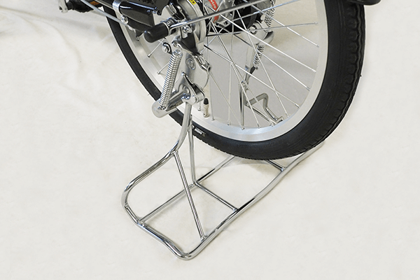 後ろ側を踏みながら、テコの原理を使って軽い力で上げることのできる丈夫なスタンドを採用。