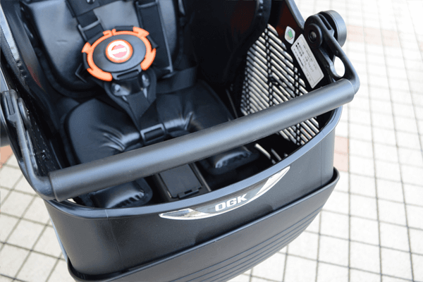 安心のOGK製の前用子供乗せ付き(体重15kgまで、身長100cm未満、年齢4歳未満対象)※写真は別商品への取り付け例です。