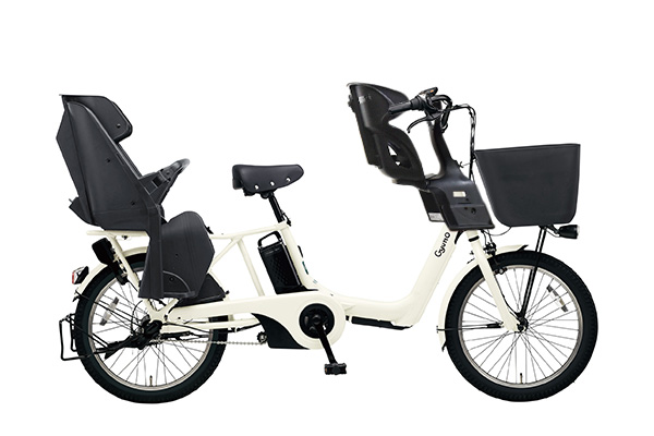 ギュットシリーズ内最高級モデルである「ギュット・アニーズ・EX」に前用チャイルドシートがついて3人乗りになりました!ラクイックが搭載され、キーをどこかにしまったままでも、電源をONした瞬間に後輪サークルが自動開錠!荷物が傷つきにくく、中身が見えにくいバスケットは防犯のことも考えられて作られています。小柄な人でも足が届きやすいスタンドを採用!力を入れずして、らくらくスタンドを立てることができます。バッテリー容量は16.0Ah!オートマチックモードでは約60km走行可能!充電の手間を減らすことができます。最高級モデルにふさわしい機能性を持った、誰からも愛されるモデルです!