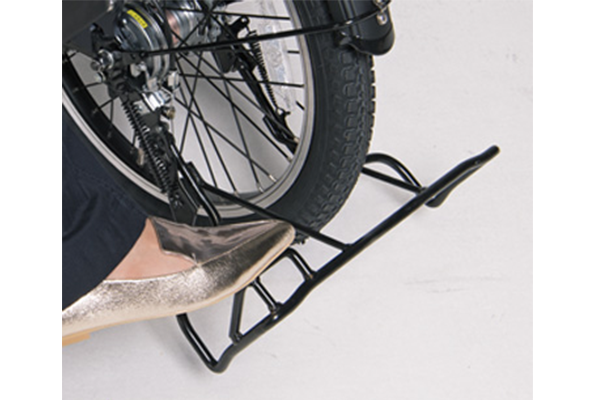 小柄な方も足が届きやすい設計。お子様が乗っていてもラクにスタンドが立てられます。