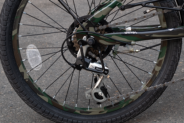 きっとこの自転車を一目見ただけで男子の心が鷲掴みにされるはず。と言いつつ女子が乗ってもそのギャップがとっても良いんですよね。タイヤが小さくて小回りも効きき、変速機もついているから街中の坂道だってラクラク。カギもライトも備え付けられているから別途買い足す必要もなく届いた瞬間から乗っていただくことができます。