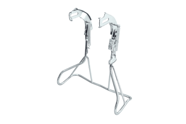 不安定な場所でも車体を安定させられる両足スタンドを搭載。