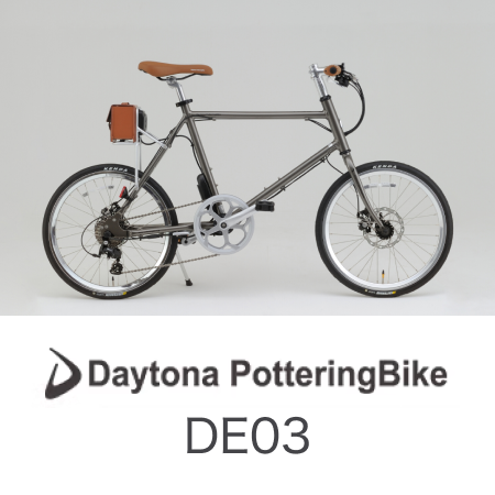 人気の「Daytona PtteringBike」シリーズの本格的なミニベロ「DE03」。本格的なアルミフレームに、マイクロシフトの9段変速を装備しつつ、バッテリーとモーター込みで驚きの16.8kg。軽量な車体で、ミニベロらしい走りが楽しめます。