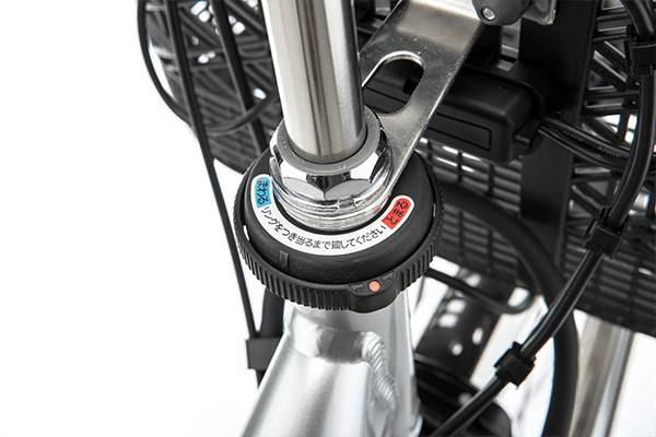 ハンドル部を固定し、駐輪時の転倒を防止します。※ハンドルを完全に固定する機能ではありません。