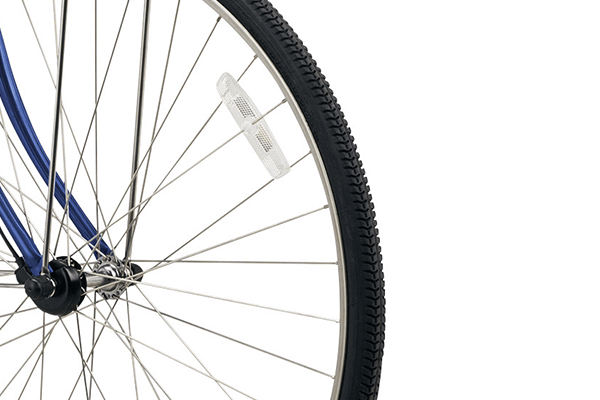 スポークリフレクター ¥800 (税別) ¥880 (税込) 横からだけでなく、前・後・斜め方向からの光もキャッチして明るく反射!暗い夜道でもあなたの存在をしっかりアピール!ハサミでお好みの長さにカットして使用できます。(8本入り) |