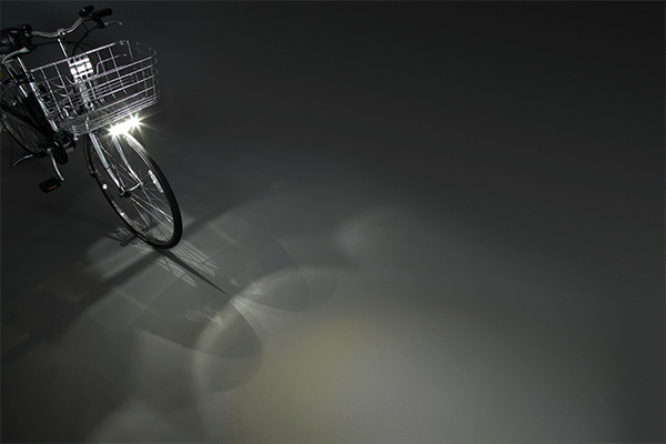 照射範囲が広くなった前照灯が前方だけでなく、足元も照射することで高い被視認性を実現。