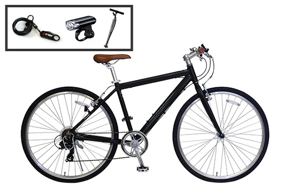 運動する習慣をつけようと思い、自転車の購入を検討しました。自分の中の予算内でちょうどいいクロスバイクがこれだったので、ロードバイクに乗ってる友人の意見も聞き、決めました。 三連休中の注文だったので、発送は休み明けでしたがそれでも来るのが早かったです!アルミフレームが軽いとは聞いてましたが、ほんとに軽いです!女性の私でもそんなに力がいらず持ち上げられます。 坂道もかなりの急斜面じゃなければ、乗ったまま漕げます。セットでこの値段はなかなかないので、とっても気に入ってます!
