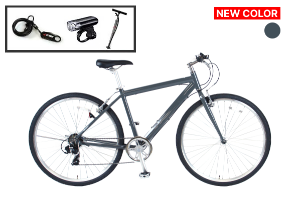 クロスバイクの入門としてはもちろん、普段乗り慣れた方にも満足頂けるcymaオリジナルスポーツ自転車に、必須パーツをセット!大切な自転車を盗難から守るワイヤー錠、夜道での走行に必須のライト、日ごろのメンテナンスに役立つエアポンプがセットになっているので、届いたらすぐ乗り出せます。また、乗りやすさを追求した車体で、シチュエーションを選ばずどんな場所でも安心して走行ができます。女性でも扱いやすいアルミフレームをセレクトしていることで車体も軽く、男女問わず初心者の方が楽しく快適に走られる自転車になっています。