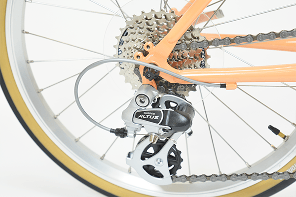 初心者でも使いやすく、どんな道でも安心・快適に走行していただける様に、信頼のシマノ製8段変速機を搭載。