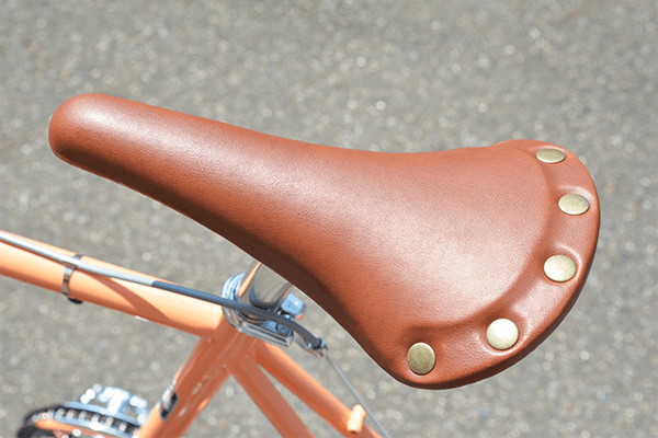 乗るほどに深みが出るレザーテイストの鋲付きサドル。サドルもファッションの一部です。