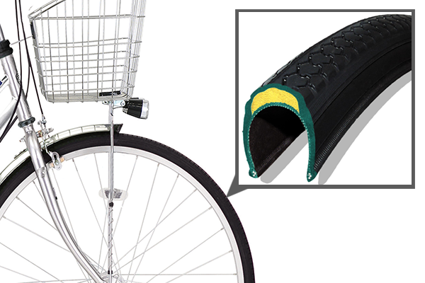 突き刺しパンクに強いセラミック配合のタイヤ。