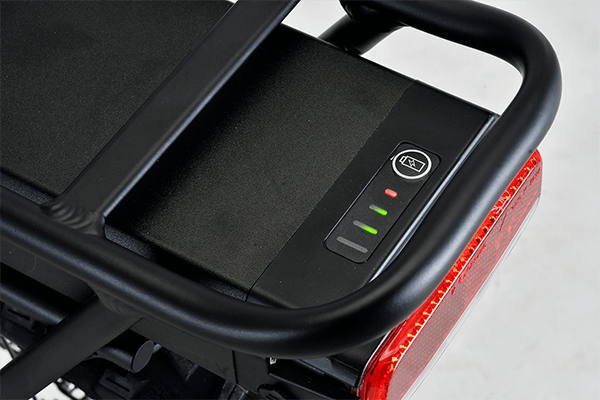 最長90kmの走行が可能なリチウムイオンバッテリーを搭載。さらにテールタイトの機能付き。