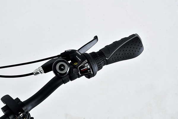 グリップシフトタイプのシマノ製外装7段変速を装備し、グリップには手に平にフィットする形状を採用。
