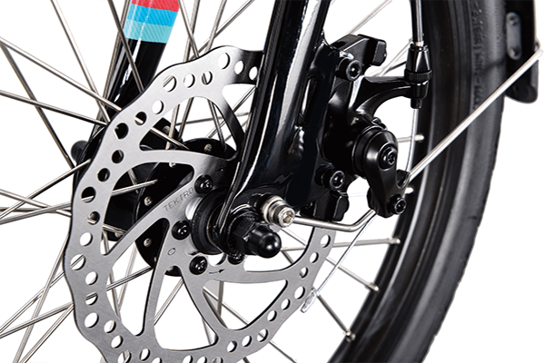 電動アシストのパワーに対応するためディスクブレーキを前後に搭載。