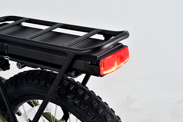 最長90kmの走行が可能なリチウムイオンバッテリーを搭載。さらにテールタイトの機能付き。