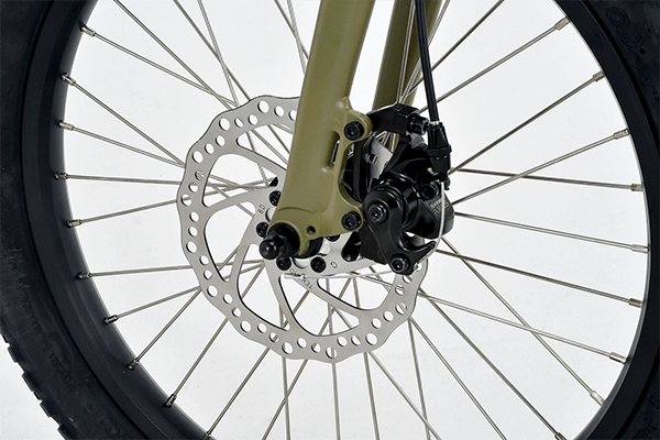 電動アシストのパワーに対応するためディスクブレーキを前後に搭載。