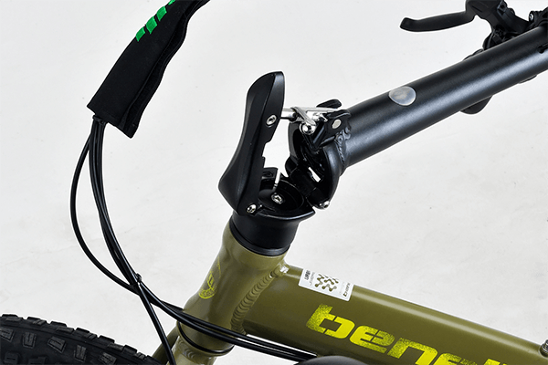 Benelli「ZERO N2.0」のファットタイヤバージョン!ファットタイヤの魅力は何と言っても通常のタイヤとは段違いのエアボリュームによる段差をもろともしない走破性とクッション性、そしてそのルックスのインパクトにあります!弱点としては重量の増が挙げられますが、そこはアシストのパワーでカバー。1充電当たりの走行距離は90kmと十分なバッテリー容量を備えており、サイクリングや自転車通勤には十分。カラーはファットタイヤが似合うミリタリーテイストなグリーンと、派手なイエローの指し色がまぶしいマット塗装のブラック、サンドベージュの3色展開です。