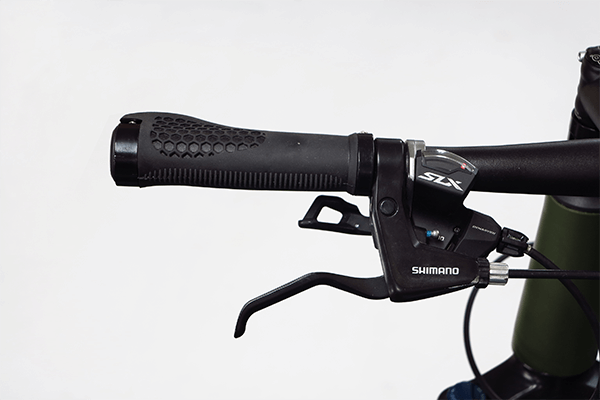 ドライブユニットにはE-BIKEの本場ヨーロッパで実績のある「bafang」製 「M400」を搭載し、スムーズで静音、且つパワフルなアシスト性能を発揮します。そのパワフルなアシストに対応するため、制動性能にもこだわり「SHIMANO」製ディスクブレーキを装備。メンテナンス性を重視しメカニカルタイプを選択しています。駆動系には「SHIMANO」リア11段速の高性能モデル「SLX」を採用。11-40Tのワイドなギアレシオは多様なシーンで効率よくギアの選択が可能です。また、フレーム直付けの頑丈なキックスタンドを装備し街乗りでの使用もOK!ドライブユニットのコントローラーもハンドルバーに配置され、スピード、航続距離、バッテリー残量、アシストレベル等が一目で分かる仕様となっています!