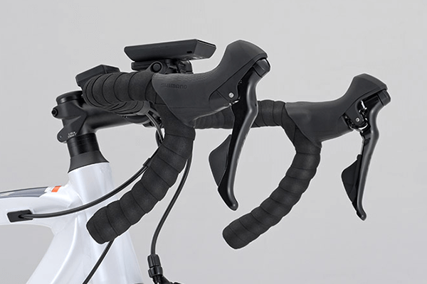 シマノ105のキャリパーブレーキを前後に装備し、安心の高い制動性能を確保しています。