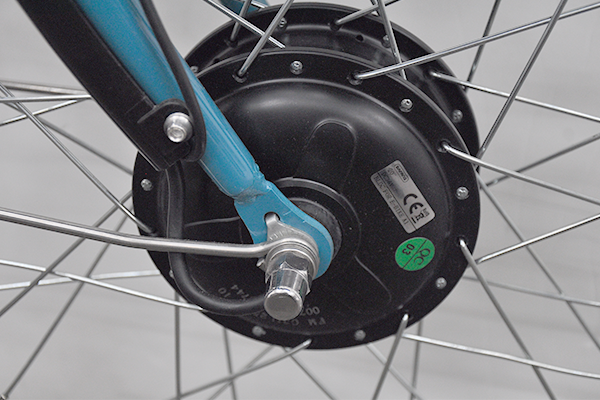 前輪はモーターで、後輪はペダルを漕ぐ力で駆動することにより両輪で力強く走ります。