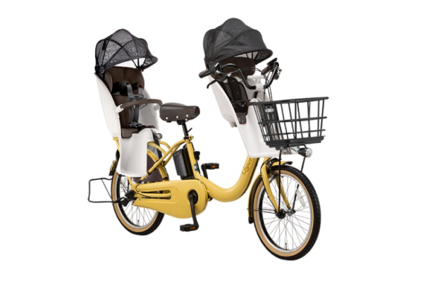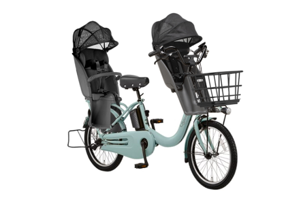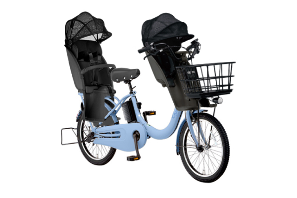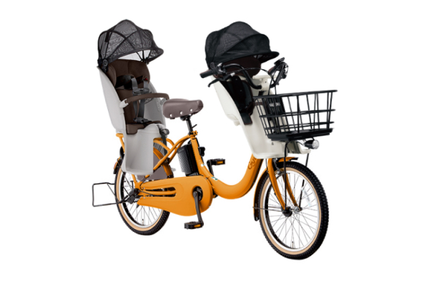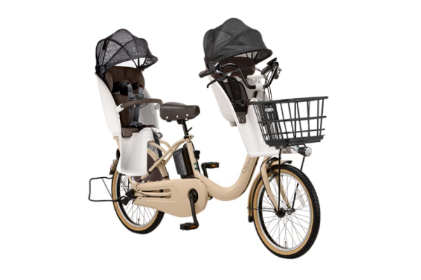 毎日お子様が乗り降りする自転車だからこそ、お子様にもお母さんにも優しい自転車を、そんな思いの詰まった1台です。 左右どちらからでもお子様の乗せ降ろしが可能な設計や、シートベルトの調整を簡単に可能にしたクイックアジャスターを採用して使い勝手にとことんこだわっています。 また、業界で初めてリアチャイルドシートに日よけを標準装備、これにより直射日光下でヘッドカバー頭部付近の表面温度上昇を最大約19℃抑えています。 もちろん、乗られるお母さんのために配慮した低床フレームや毎日のお買い物に嬉しい大型バスケットの採用、お子様を2人乗せていてもパワフルかつ長距離走行可能なバッテリーを搭載しました。走行可能距離はオートマチックモードで約60km、パワーモードで約50km、ロングモードで約86kmと長く、充電の回数も減らせて忙しい日々の中でも使いやすい設計です。