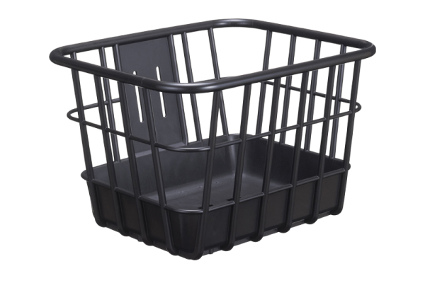 後部用樹脂製カゴ ブラック ¥3,180(税別) お買い物に便利な後ろカゴ。軽量でサビにくく、落ち着いたデザインの樹脂製。網目が細かいので中身も見えにくく、すき間から荷物が落ちる心配もありません。底面サイズ/幅250×奥行350、上部サイズ/幅320×奥行425、高さ/前方185~後方235(mm) |