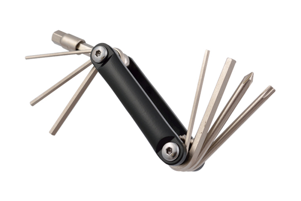 フォールディングツール ブラック ¥1,200(税別) スポーツバイクのサドル高さ調整やいざという時に役に立つ携帯工具※ヘックスレンチ2/2.5/3/4/5/6/8mm/プラスドライバー/トルクスレンチT25 |