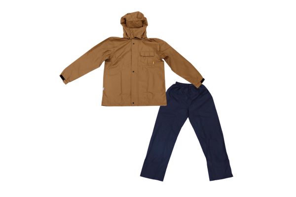 カジメイク 4WAYストレッチシールドEX(Mサイズ) ベージュ/Mサイズ ¥5,600(税別) 適応身長 160-170cm 4方向に伸びるストレッチ性の高い生地を使用したレインスーツ。安全性を高めるジャケット背面リフレクタープリント、パンツ裾リフレクタープリントを採用。おしりの縫い目をなくし、防水性を高めました。耐水圧:10,000mm、透湿度:10,000g/㎡・24hr ※撥水加工がされておりますが、完全防水の性能は備えておりません。 |