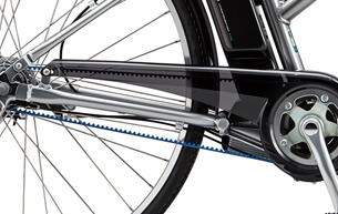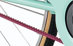 チェーンよりも10倍強いベルトドライブ採用。サビる心配も外れる心配もなくメンテナンスフリー!