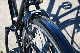 黒色のシンプルな泥除けを装備。雨上がりの通勤時に、泥はねや水はねから服の汚れを防ぎます。
