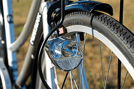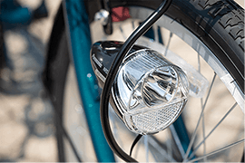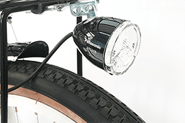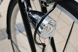 暗くなると点灯するLEDライト。オートライトなので点灯中もペダルが重くなりません。 -