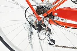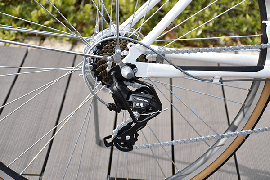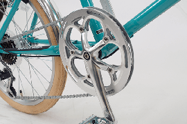 チェーンリングの大型化により、7段変速ながら長距離走行に対応。クロモリ素材だからできる細身のデザインやレトロなカラーが魅力で、走る楽しみを提供します。