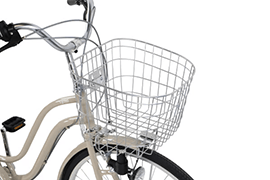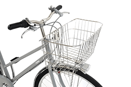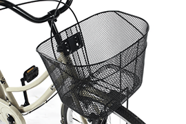 大型の前かご付き。大きめの通勤バッグも難なく入ります。会社帰りにスーパーへ寄ってお買い物をすることだってokです。