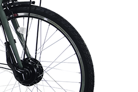スリムでスタイリッシュなダイヤモンド型フレームに、700C大径タイヤを採用した街乗り向けの電動クロスバイクです。
