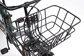 ミニベロ(小径車)では珍しい前かごを装備。通勤バッグを入れたり、お買い物袋を入れるのにもおすすめです。