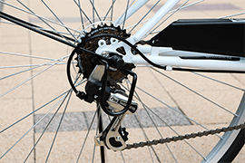 坂道でも快適に走行していただける、信頼のシマノ製7段変速機を搭載。 -