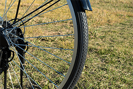 安定性抜群のマウンテンバイクと同じ幅50mmのタイヤを採用することで、段差も砂利道も気にせず走行可能。 -