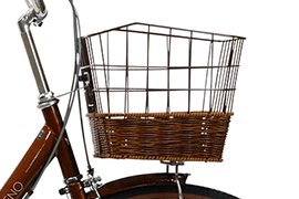 通勤・お買い物にうれしいオシャレな籐風カゴ付きのシティサイクル!パーツもブラウン調で統一していて、見た目に妥協したくない方におすすめ。通勤に欲しい機能も十分揃っています。低床設計なので女性におすすめです。
