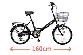 車体全長は約160cmと一般的な自転車と比べ10cmほど小さいです。家や通勤先の駐輪スペースでも場所をとりません。 -