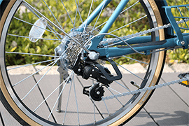 タイヤサイズの小さいミニベロ(小径車)でも、大型チェーンリングと6段変速により、ひと漕ぎで進む距離は一般車並み! -