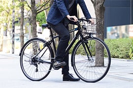 本格派クロスバイクに、カゴや泥除けなどがついた通勤にピッタリな一台。乗り心地抜群!毎日の通勤がただの移動時間ではなく、爽快に走ることを楽しめる時間に。